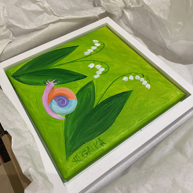huile sur toile de Galka,20x20cm pièce unique. Cadre blanc (caisse américaine). 24x24cm. Prêt à accrocher